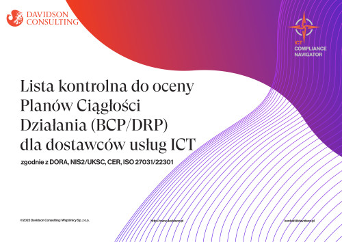 Skorzystaj z naszej Ankiety Davidson Consulting ICT Compliance Navigator, która pomoże Ci systematycznie ocenić Plan Ciągłości Działania ICT pod kątem zgodności z wymogami regulacji europejskich, polskich ustaw i standardów ISO.